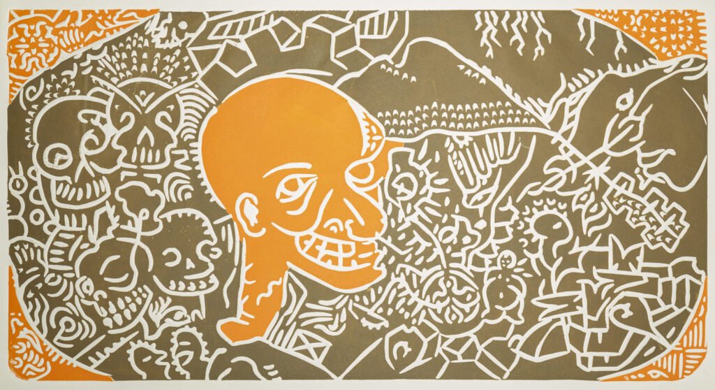 "Día de Muertos en Niños Santos" con técnica grabado en linóleo, 2008.